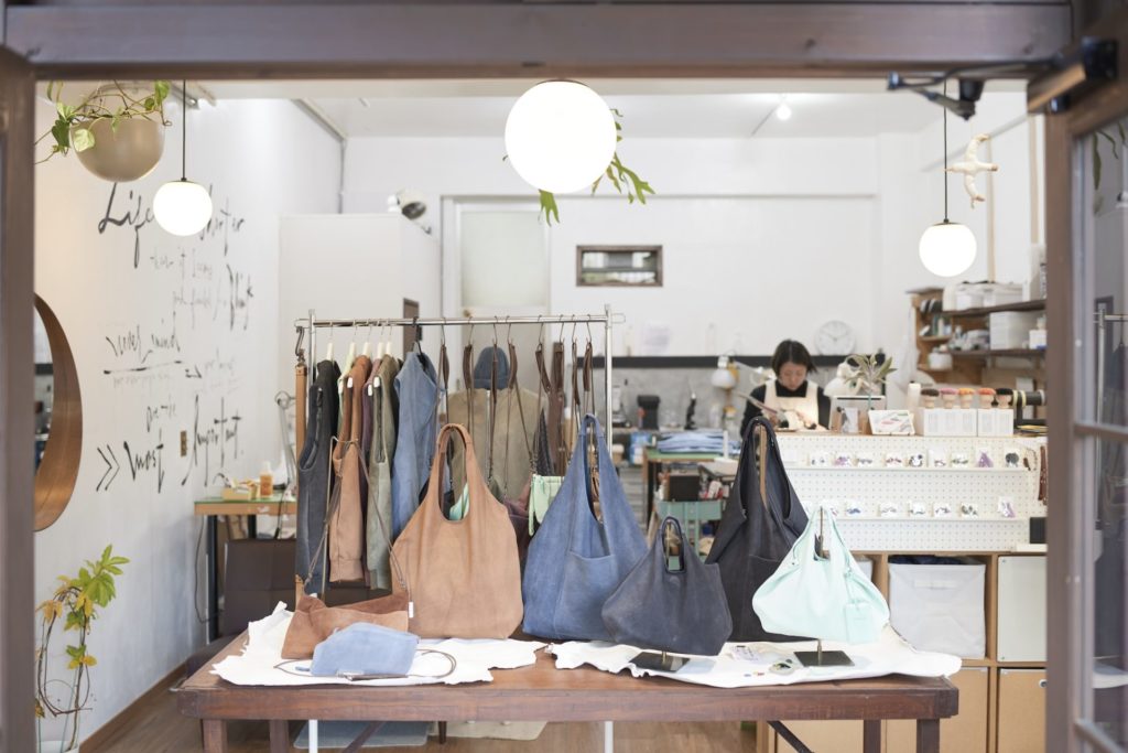 ENISICAの商品は「育てる革小物」アトリエショップで作っています。